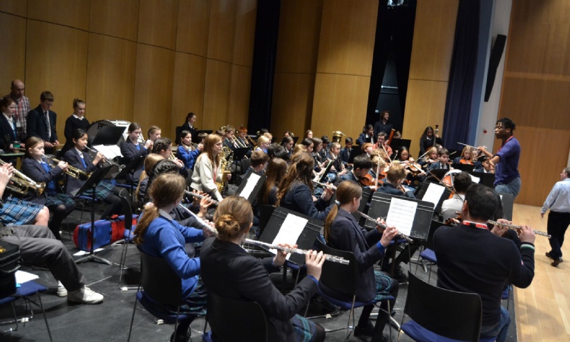 Each period throughout the school day consisted of various opportunities to workshop and study this piece of music in finer detail. Firstly, pupils branched off into sectionals (Strings, Woodwind, Brass and Percussion), whereby they worked alongside professional musicians to further enhance their musical knowledge and ability on their instruments. Afterwards, each instrumental family combined to form one large orchestra which was conducted by maestro Enyi Okpara.