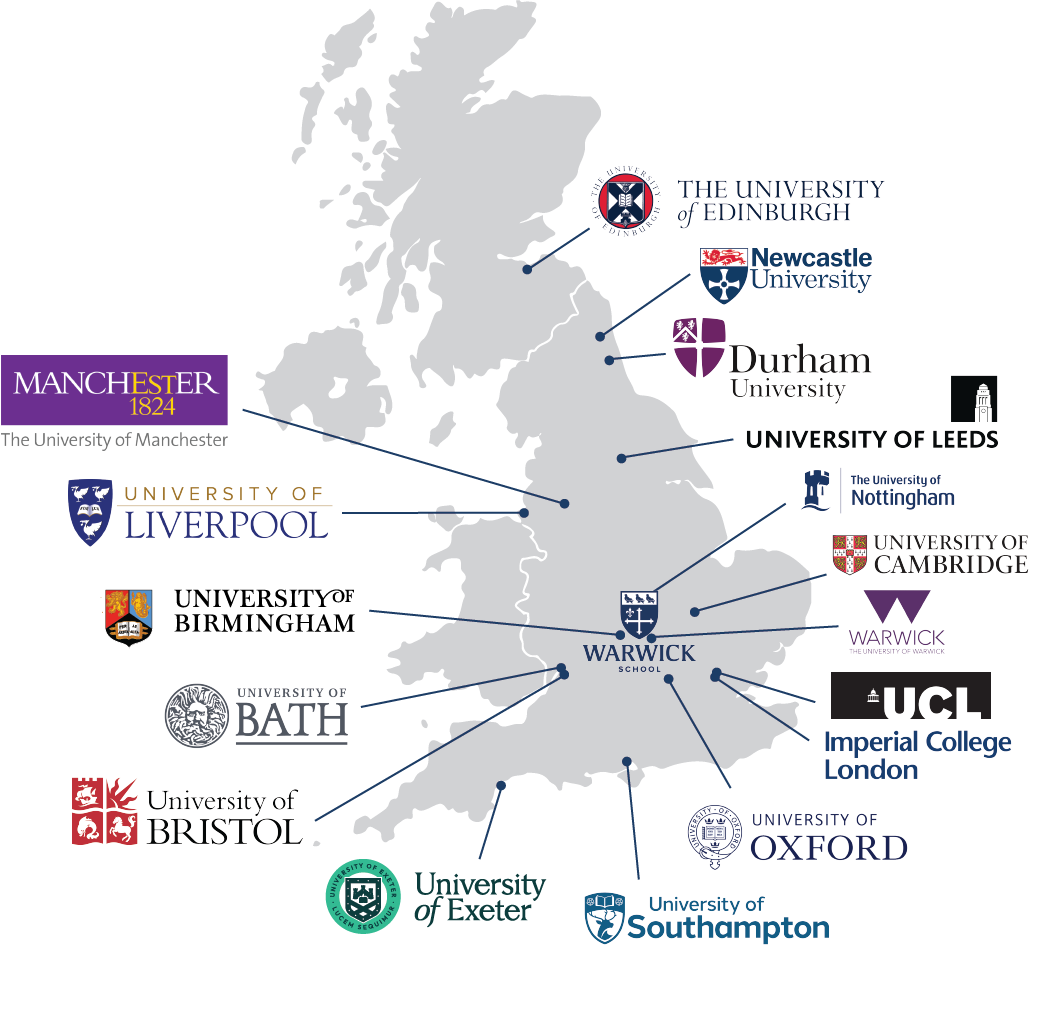 Leavers routinely go on to attend Russell Group universities, as well as other prestigious universities such as the University of Bath, Loughborough University, and the University of St Andrews. As well as some pupils who take up places at universities abroad, there are also pupils who explore Degree Apprenticeships, which allow students to gain industry experience and work towards a degree with companies such as Big Four accountancy firms, Accenture, BAE Systems, and more.